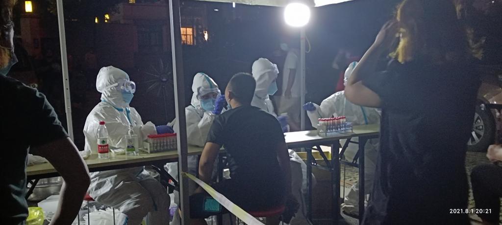 2021年8月1日起,耿霈霖积极参与到所在社区核酸采集工作。顾不得初次穿上厚厚的防护服,带来的闷热、活动受限等诸多不便,耿霈霖就立即投入到了核酸采样的工作中,不间断工作7个小时,采集样本1100多份,在整个过程中衣服湿透又蒸干又湿透,全身的汗水往鞋里流,期间的阵阵胸闷、头晕以及缺水的恶心感,都在考验着他。从8月1日至8月6日连续奋战5天,耿霈霖全程参与当地两轮核酸采集工作,完成了3000多份样本的采集。