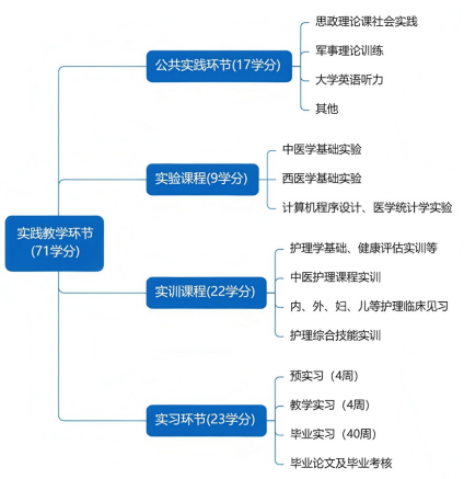 厚基础:强化公共基础知识,开设思政类、语言类、通识类及体育类课程;夯实医学基础课程和护理学专业课程。