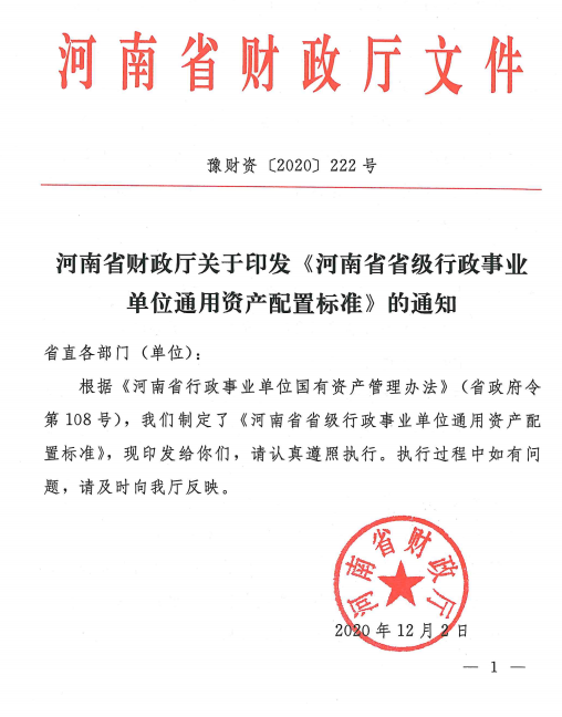 河南省财政厅关于印发《河南省省级行政事业单位通用资产配置标准》的通知