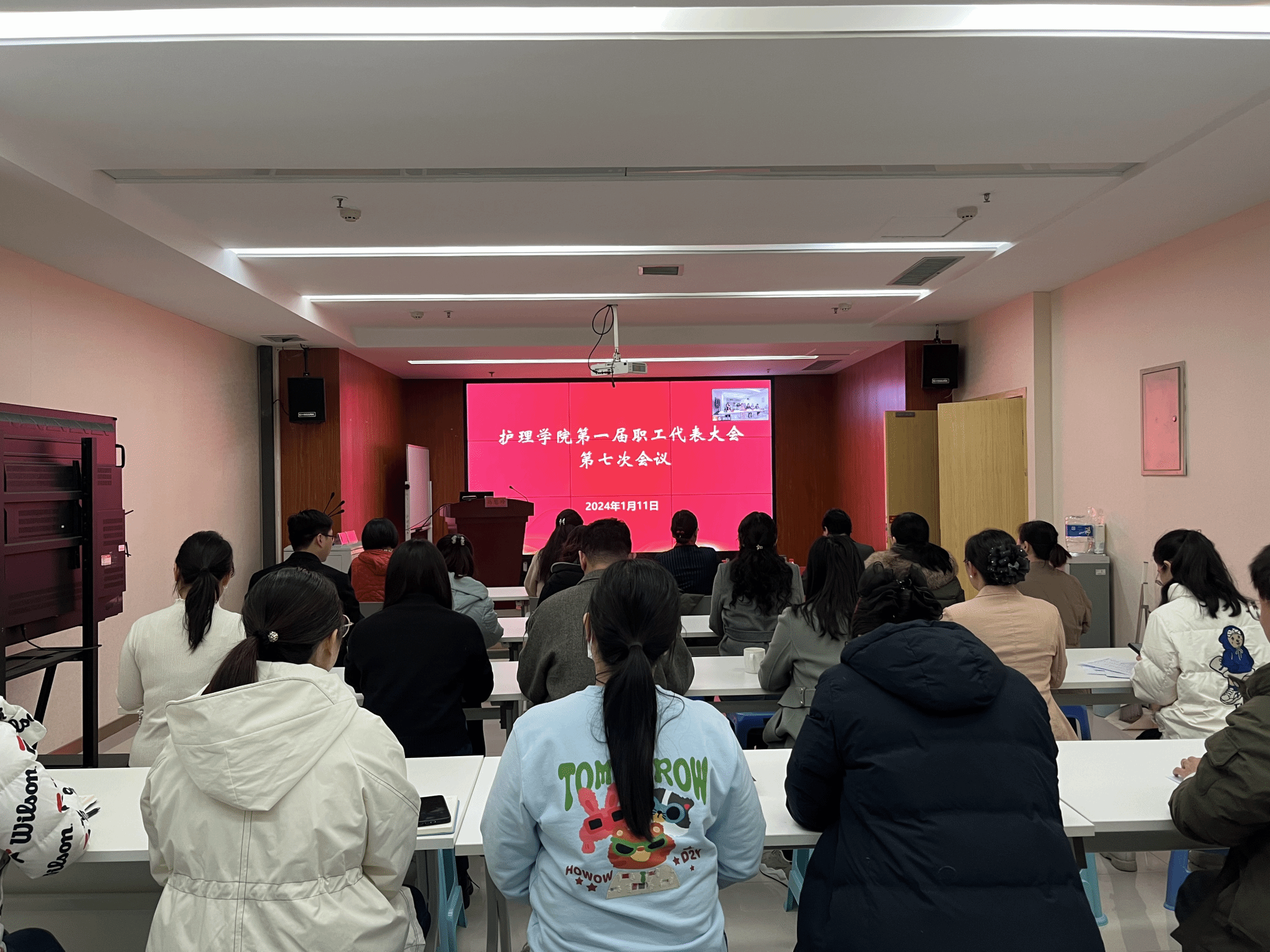 本网讯(文/谭亚男 图/赵静雯)2024年1月11日,beat365 手机版官方网站召开第一届职工代表大会第七次会议。学院全体教职工和列席代表参加会议。会议由学院党委副书记马慧玲主持。